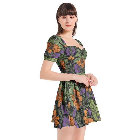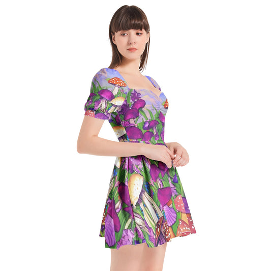 Mushroom Garden Puff Sleeve Mini-Dress