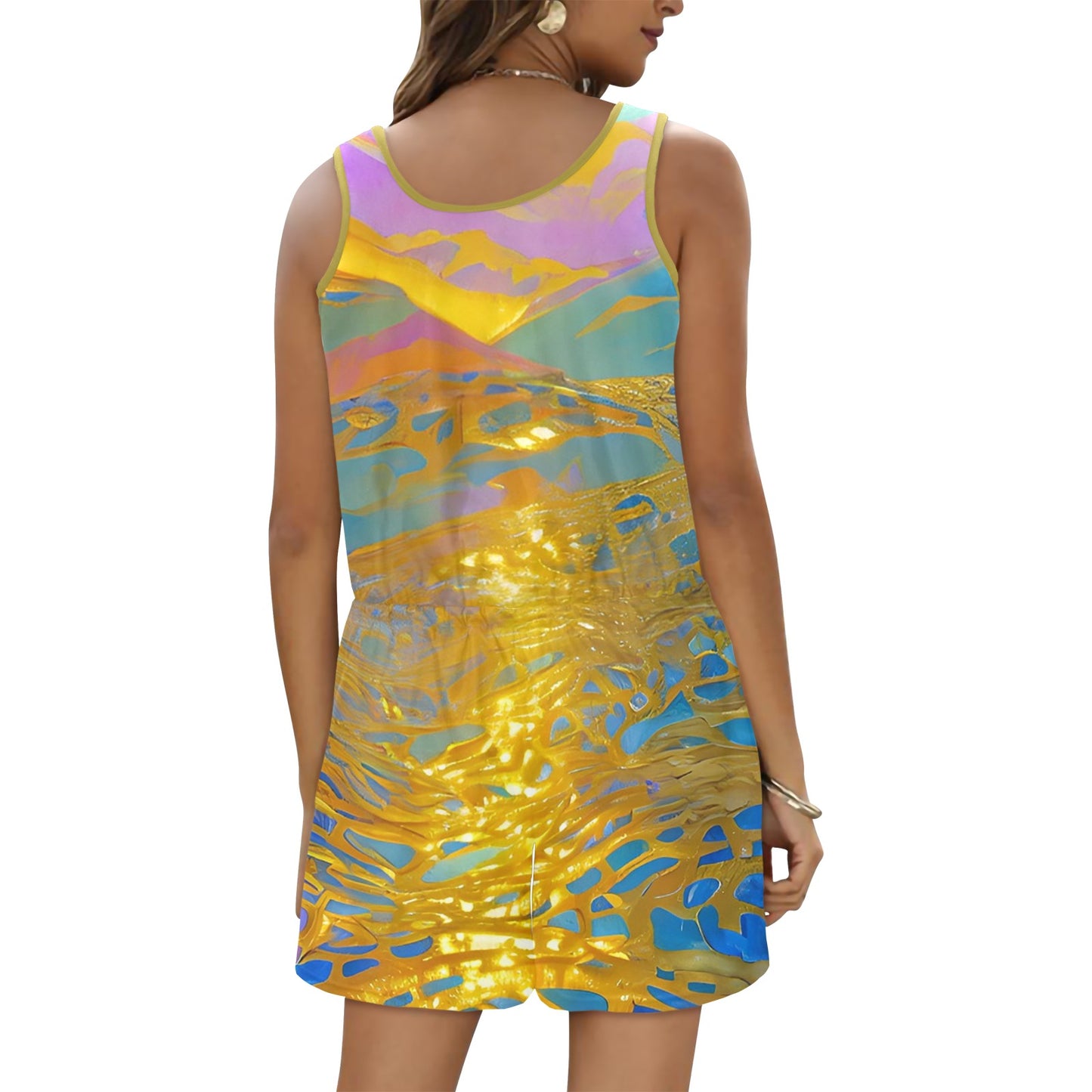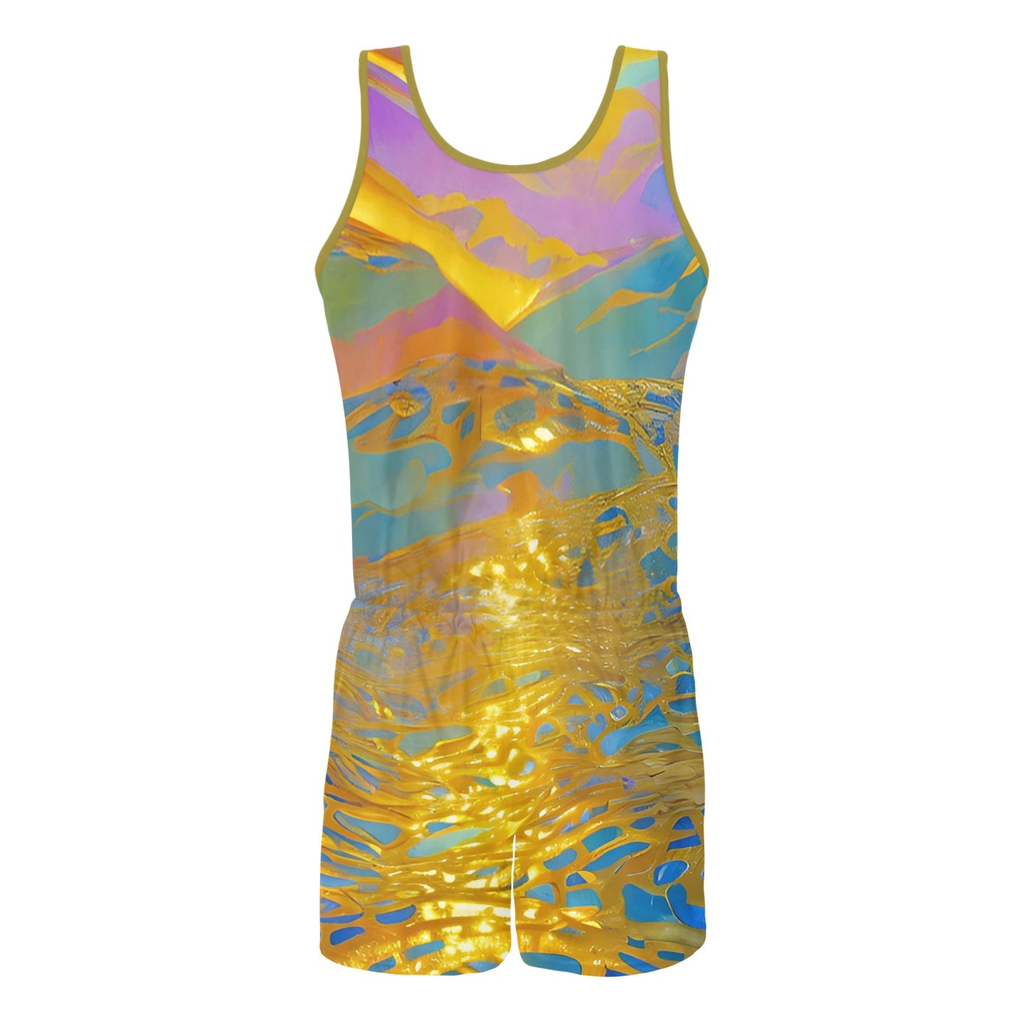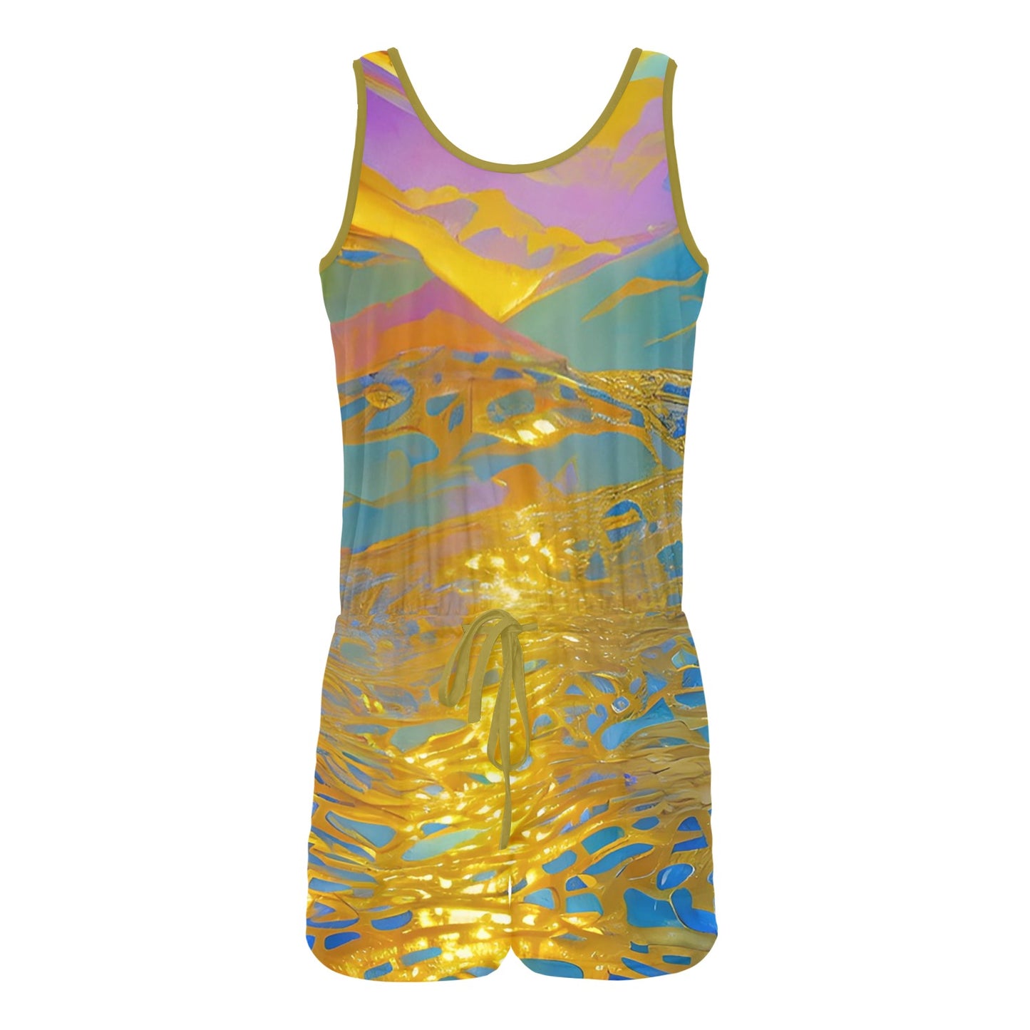Step into a realm of golden tranquility with the "How Gold Was My Valley" Sleeveless Short Romper. This enchanting piece is a harmonious blend of comfort, style, and sustainability.