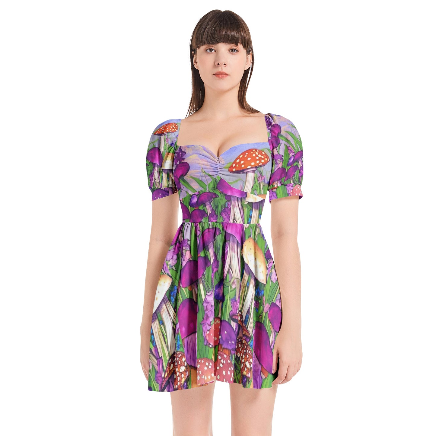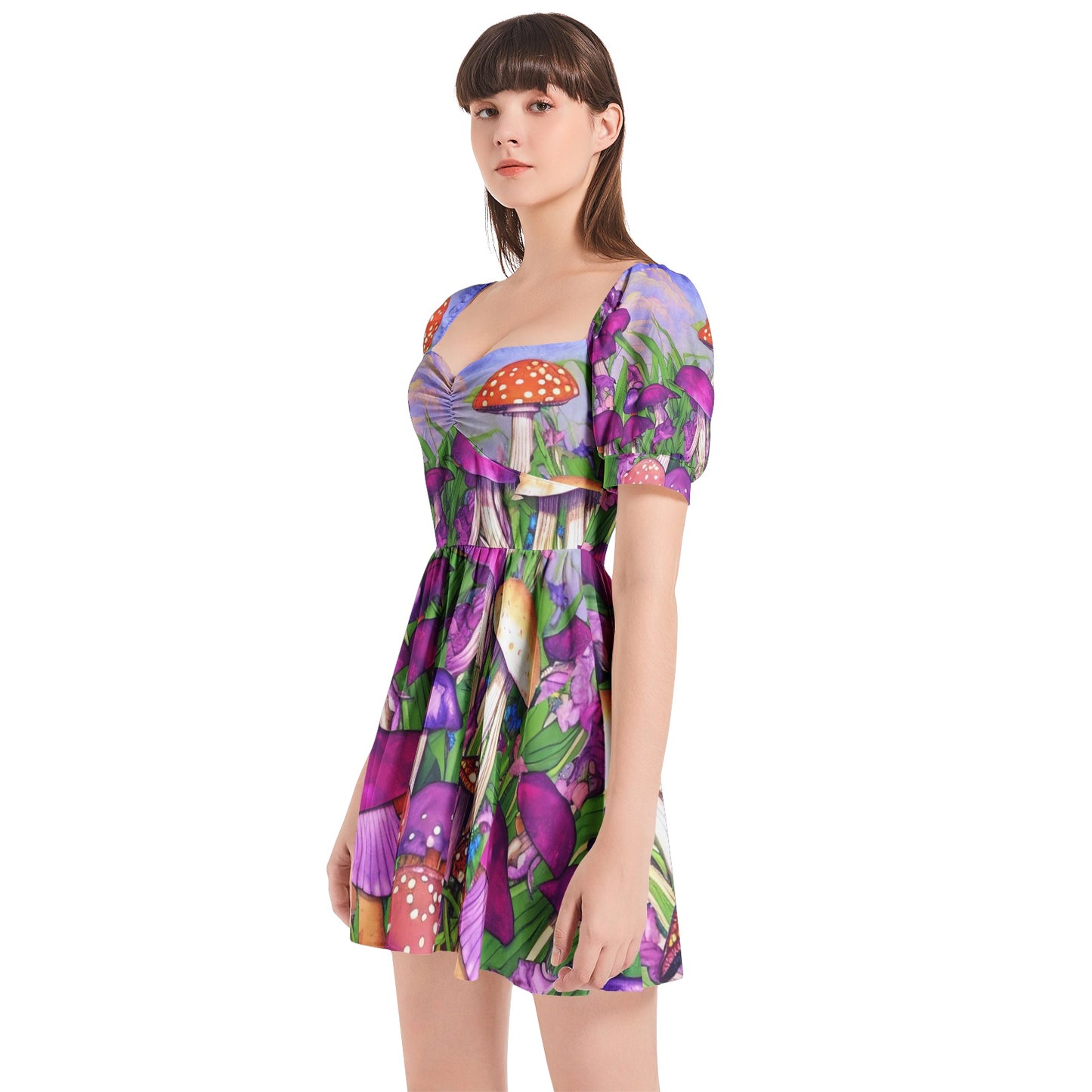 Mushroom Garden Puff Sleeve Mini-Dress