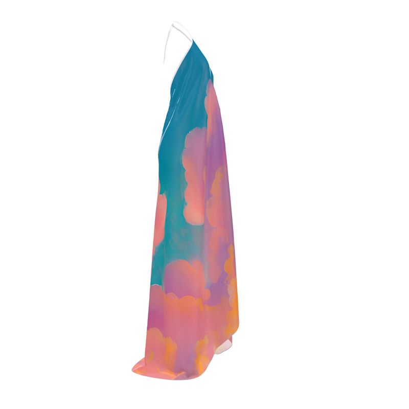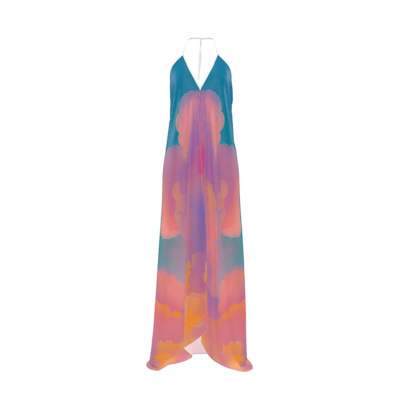 Immerse yourself in the fluid elegance of our Designer Halter Neck Dress, tailored for the quintessential summer gathering or a regal day in your own sanctuary. This piece is a celebration of feminine form and artistic print, offering a refined yet playful attire option for both grand events and intimate home lounging.