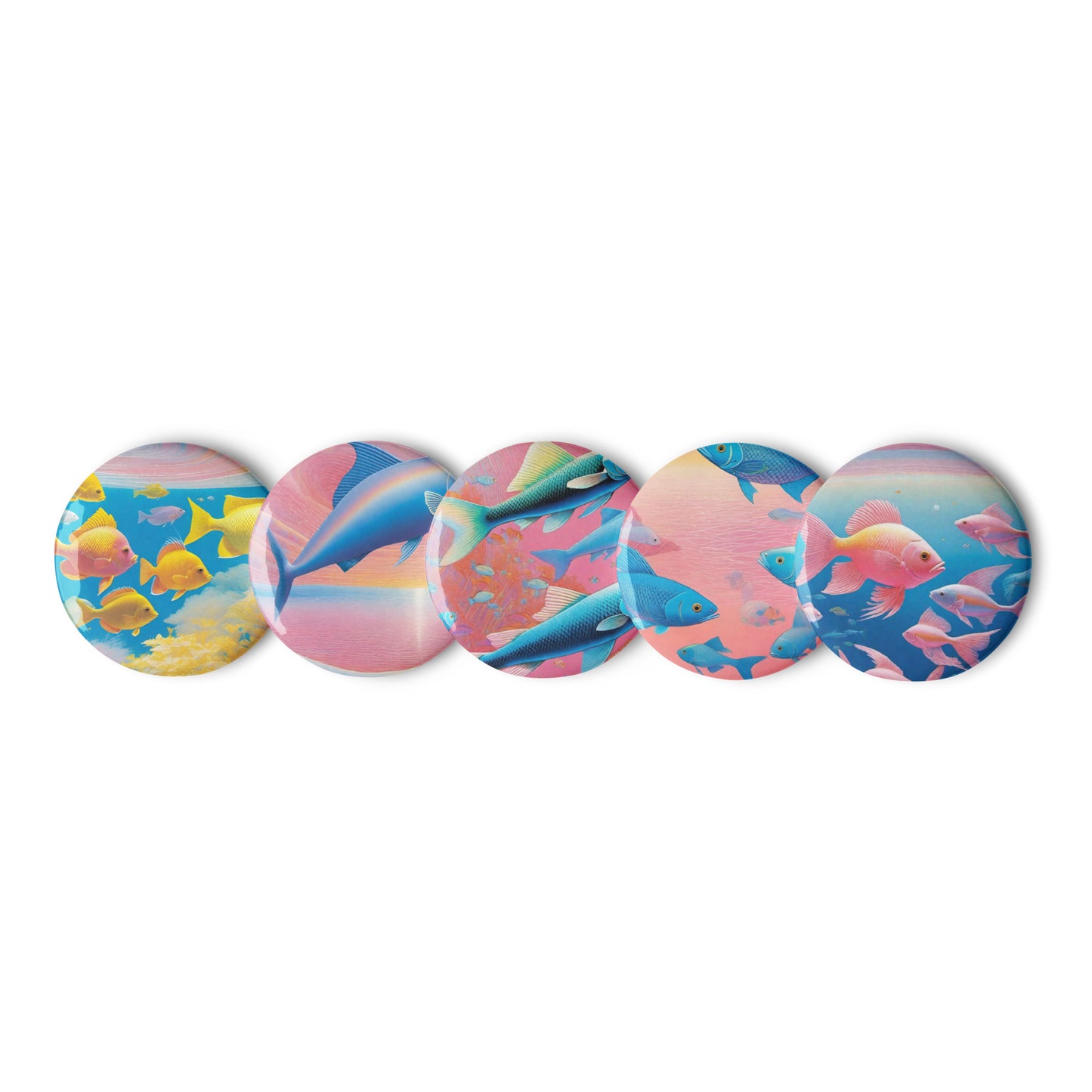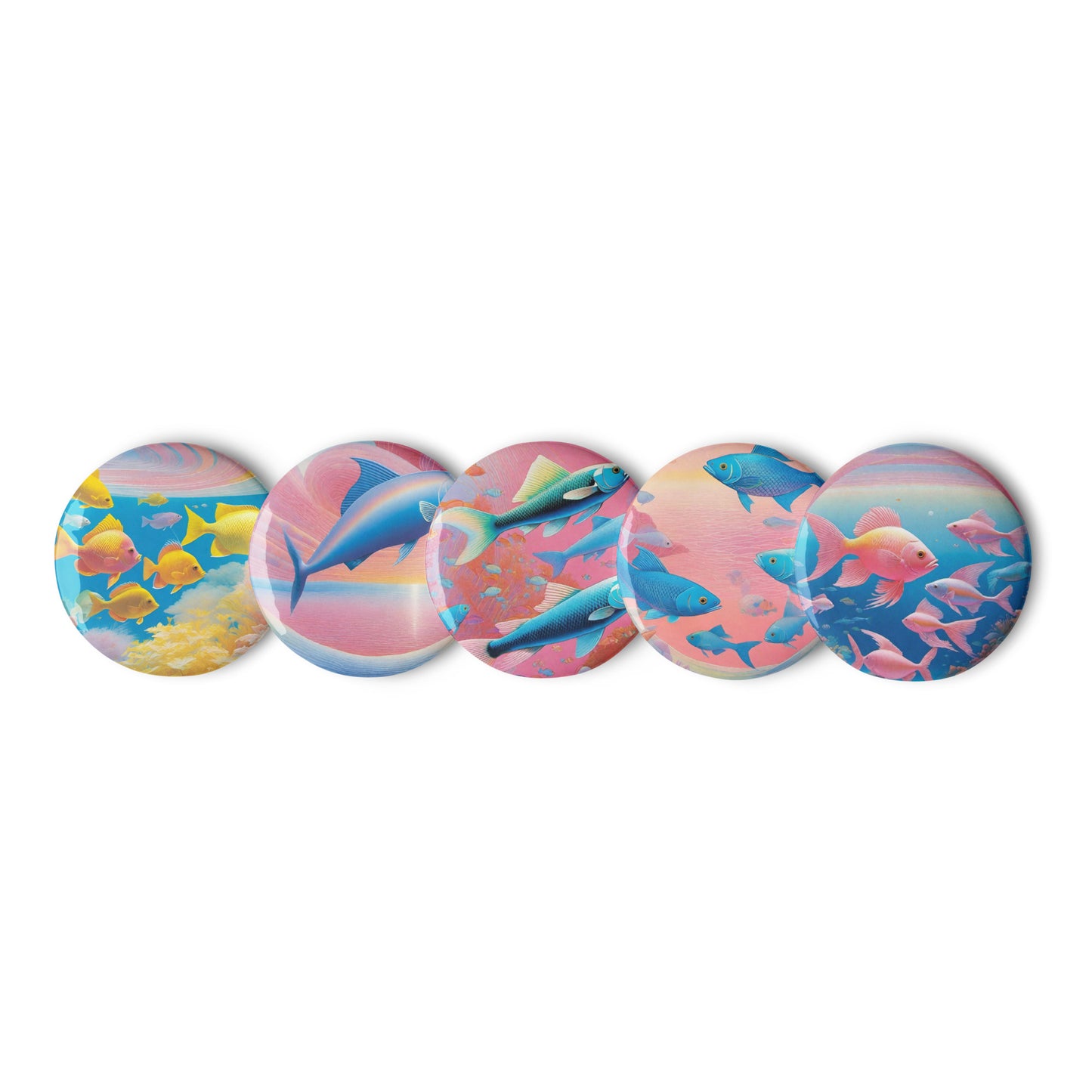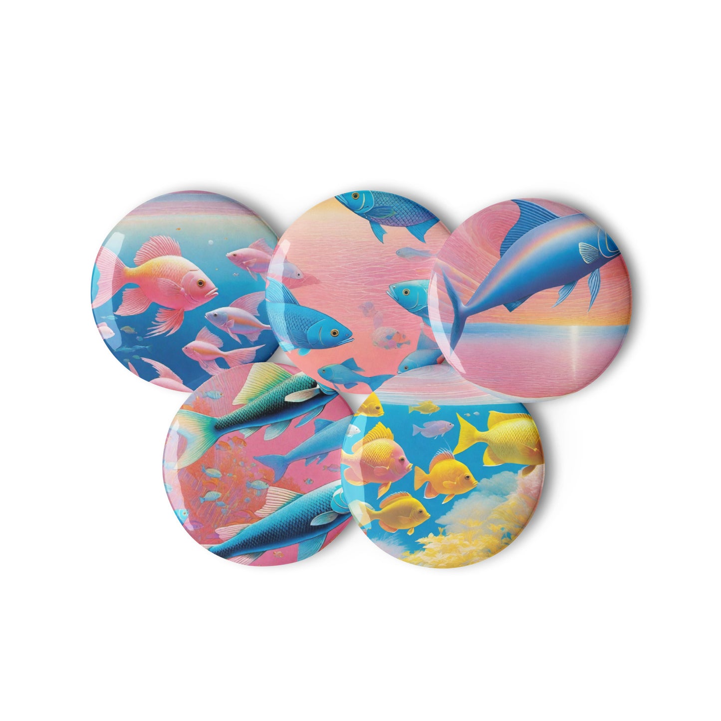 Dive into the vibrant world of accessorizing with our exquisite Sea Sprite pin buttons. These enchanting accessories are more than just ornaments; they're a statement of style and a whisper of mystery from the ocean's depths. Each set contains five unique buttons, showcasing a mesmerizing array of fish swimming gracefully through colorful coral reefs. The dreamy hues and ethereal underwater landscapes offer a glimpse into a serene, aquatic paradise, turning any item they adorn into a piece of art.