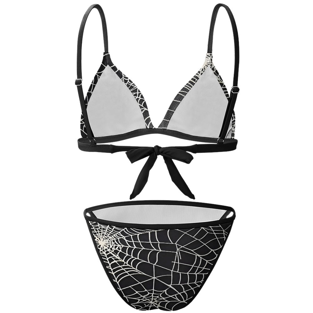 Mesmerizing Design: The unique spider web pattern sets this bikini apart, creating an alluring and edgy look perfect for making a statement. The intricate web detailing adds a touch of mystery and sophistication, making it a must-have for those who love to stand out.