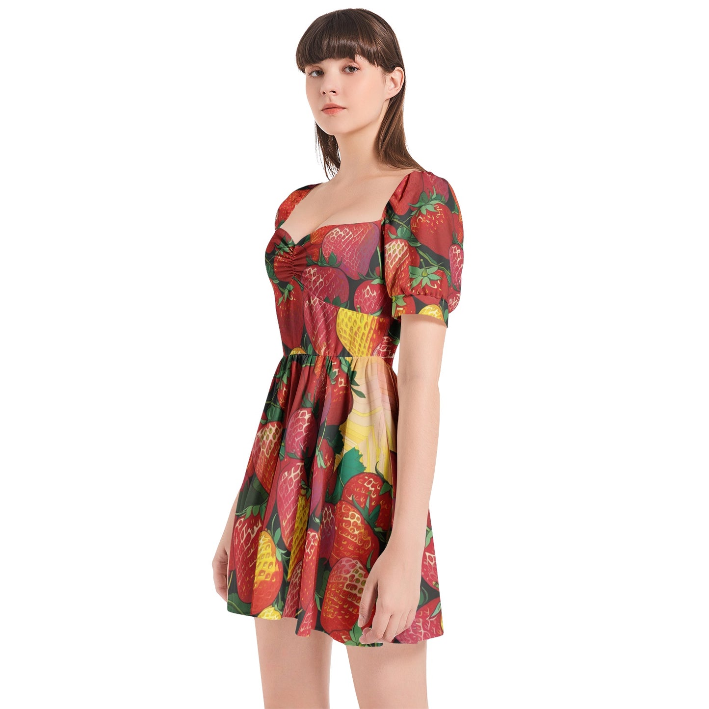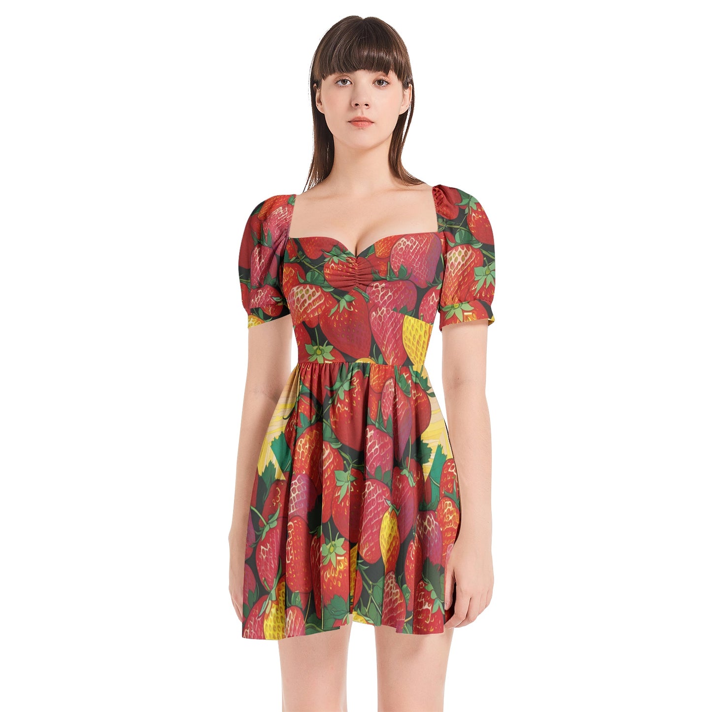With a sweetheart neckline that nods to classic romance, short puff sleeves add a playful touch to your silhouette. The ruched bottom enhances the soft flare, striking the perfect balance between cottagecore dreams and bold maximalism.