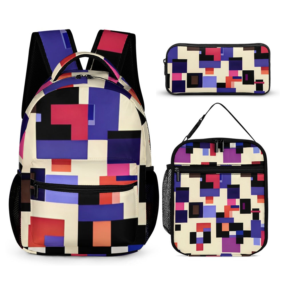 Elevate your everyday essentials with this enchanting School Bag Set, featuring a matching backpack, lunch bag, and pencil case adorned with vibrant patterns. Crafted from durable twill and polyester, this set is built to last, combining high-quality materials with thoughtful design details.