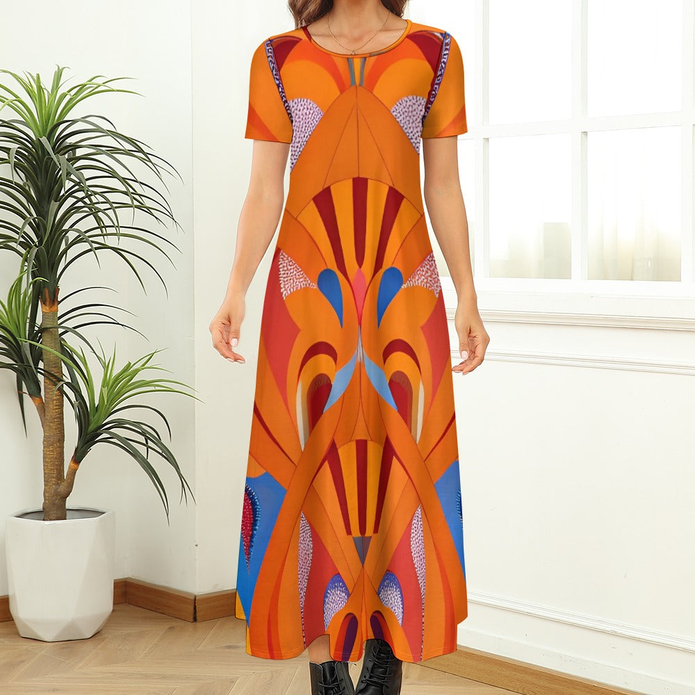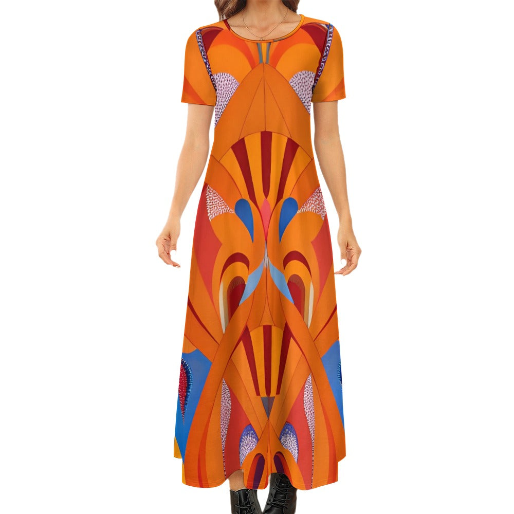 This maxi dress is longest and fits best on heights between 5'2" and 5'6"