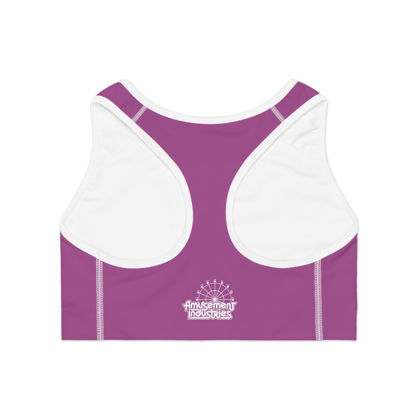 🌈 Custom Style: Elevate your activewear game with our Classic Sports Bra, proudly featuring the iconic Amusement Industries Ferris wheel logo. With a rainbow of colors to choose from, you can mix and match effortlessly with our Classic Joggers, Retro Gym Shorts, or Active Leggings. Make a statement, your way.