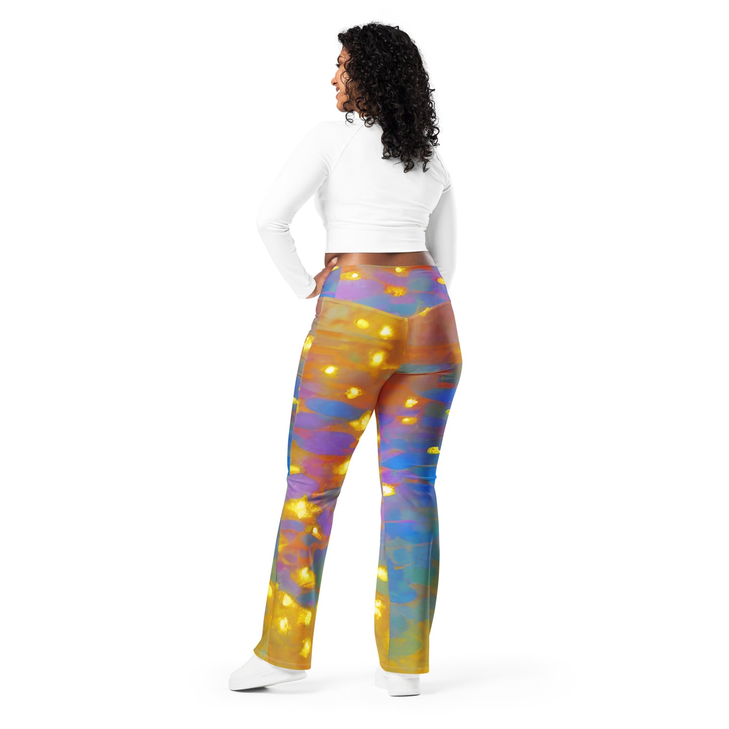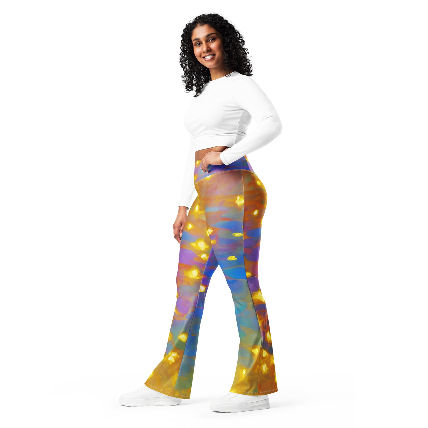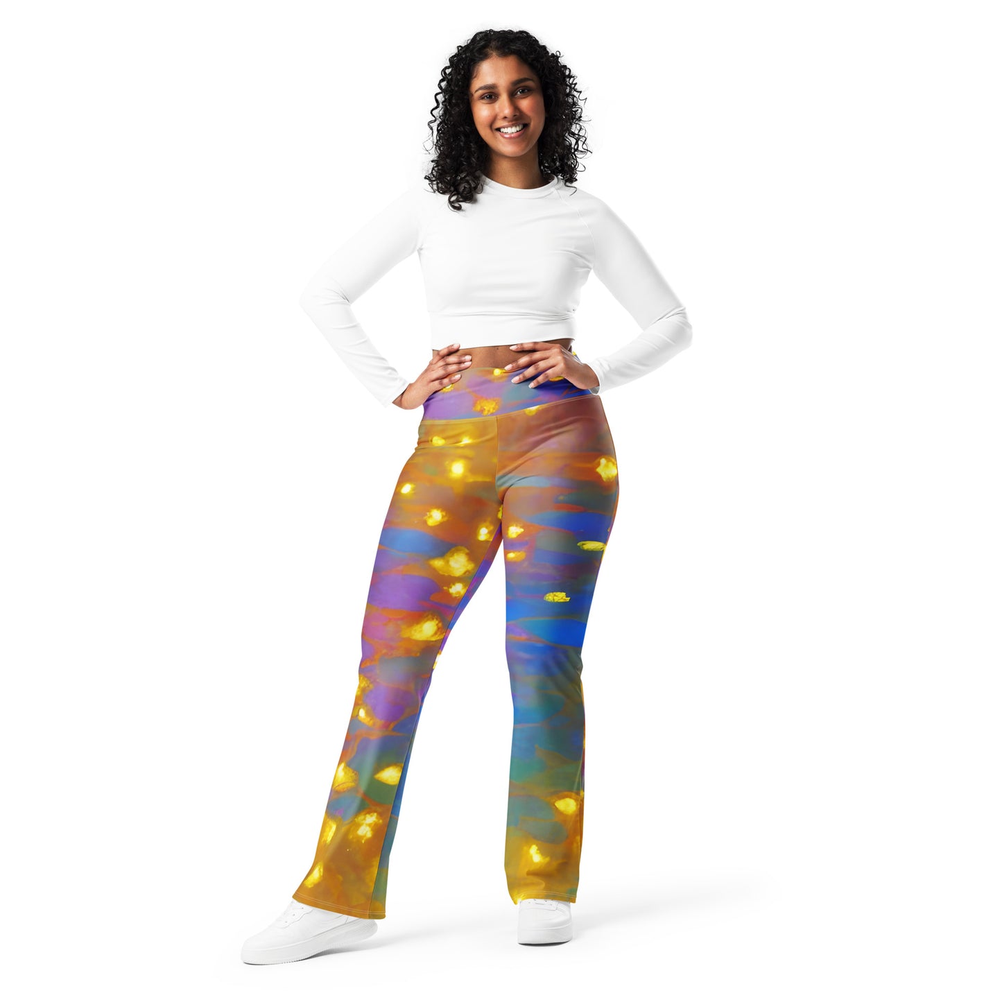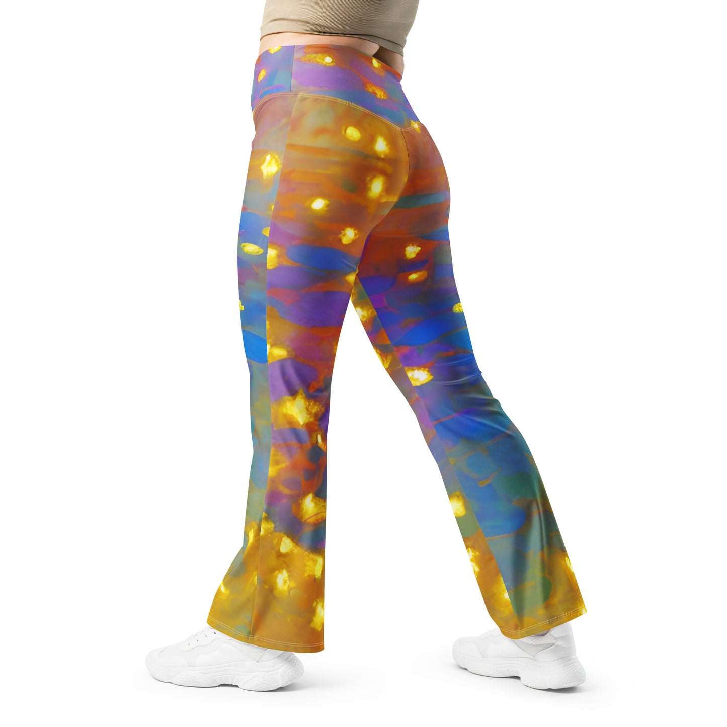 The leggings feature a stylish flared leg, adding a dash of feminine flair to your workout or casual wear. Whether you're powering through a morning jog, crushing weights at the gym, or simply elevating your street style with a sleek bomber jacket or cozy hoodie, these leggings adapt to every aspect of your dynamic lifestyle.