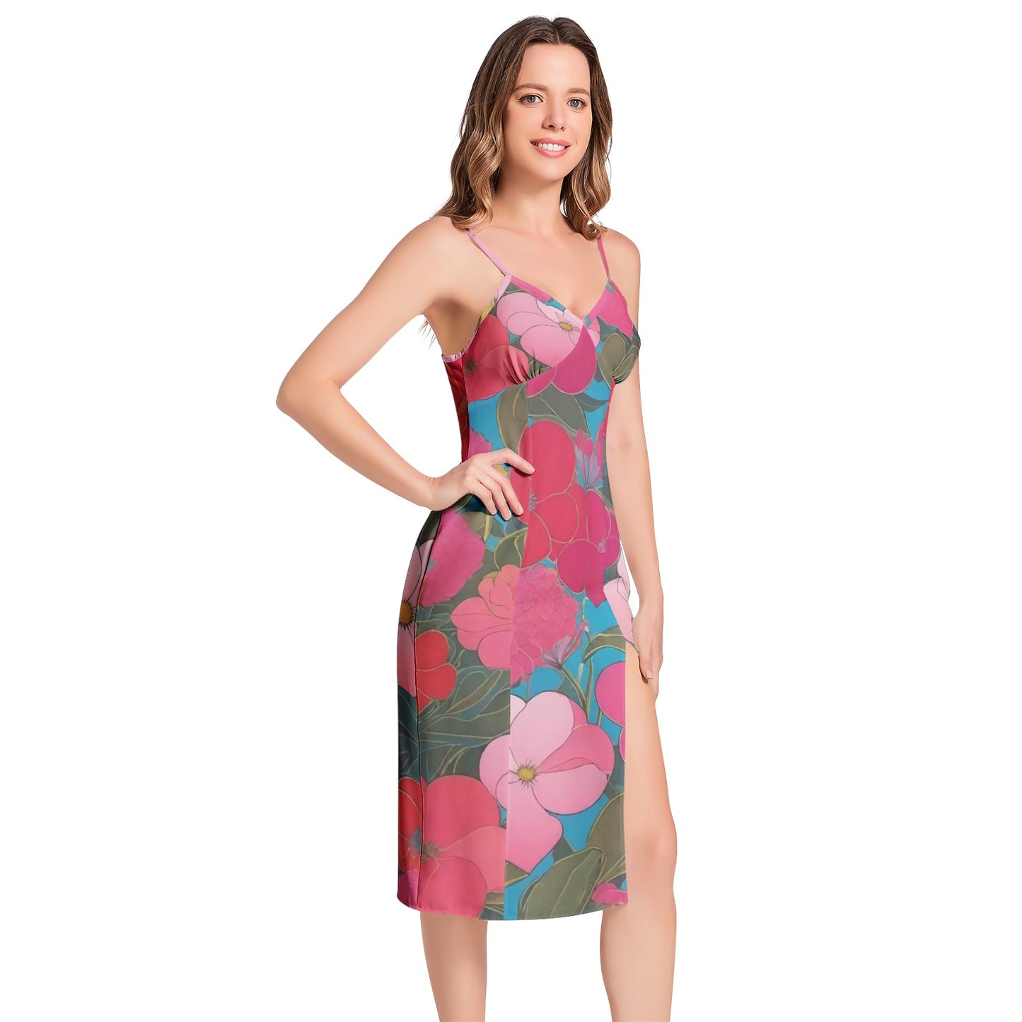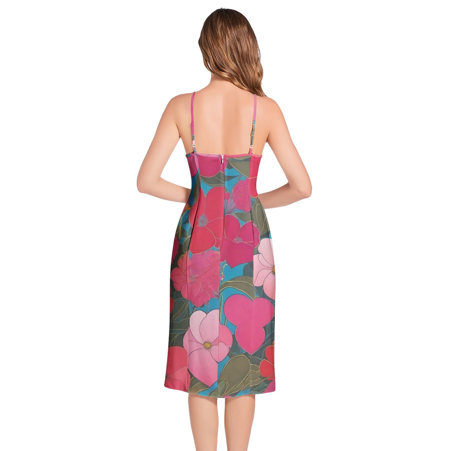 Make heads turn with our Sweetheart Cami Dress. Designed with a V-neck and spaghetti straps, this bodycon dress accentuates your curves in all the right places. The high waist and thigh slit add a touch of sexy allure, while the knitted chiffon fabric ensures comfort and slight stretch. Perfect for a date night or a Valentine's Day celebration, this dress will make you feel confident and chic. With its back hidden zipper and midi length, it's both stylish and easy to wear. Machine washable for convenience.