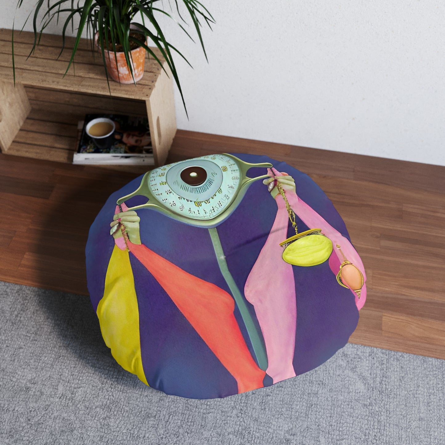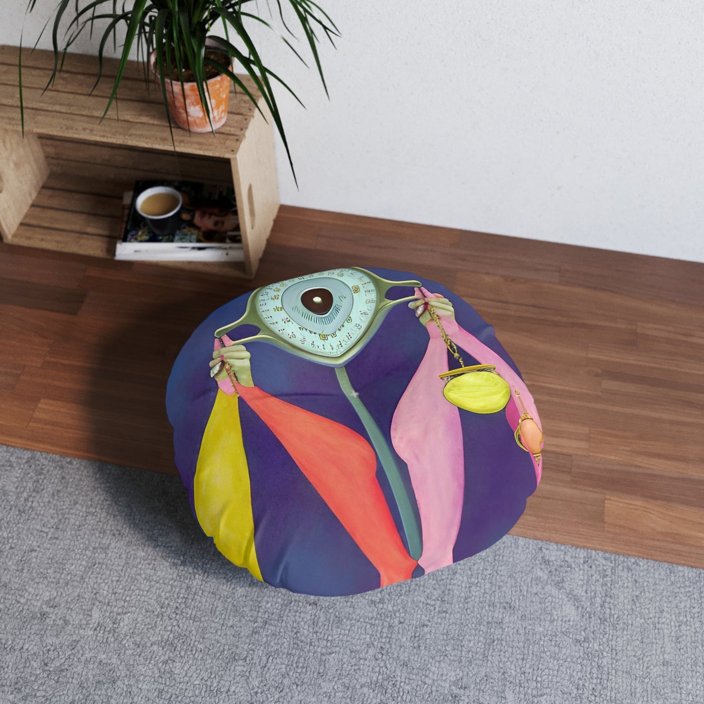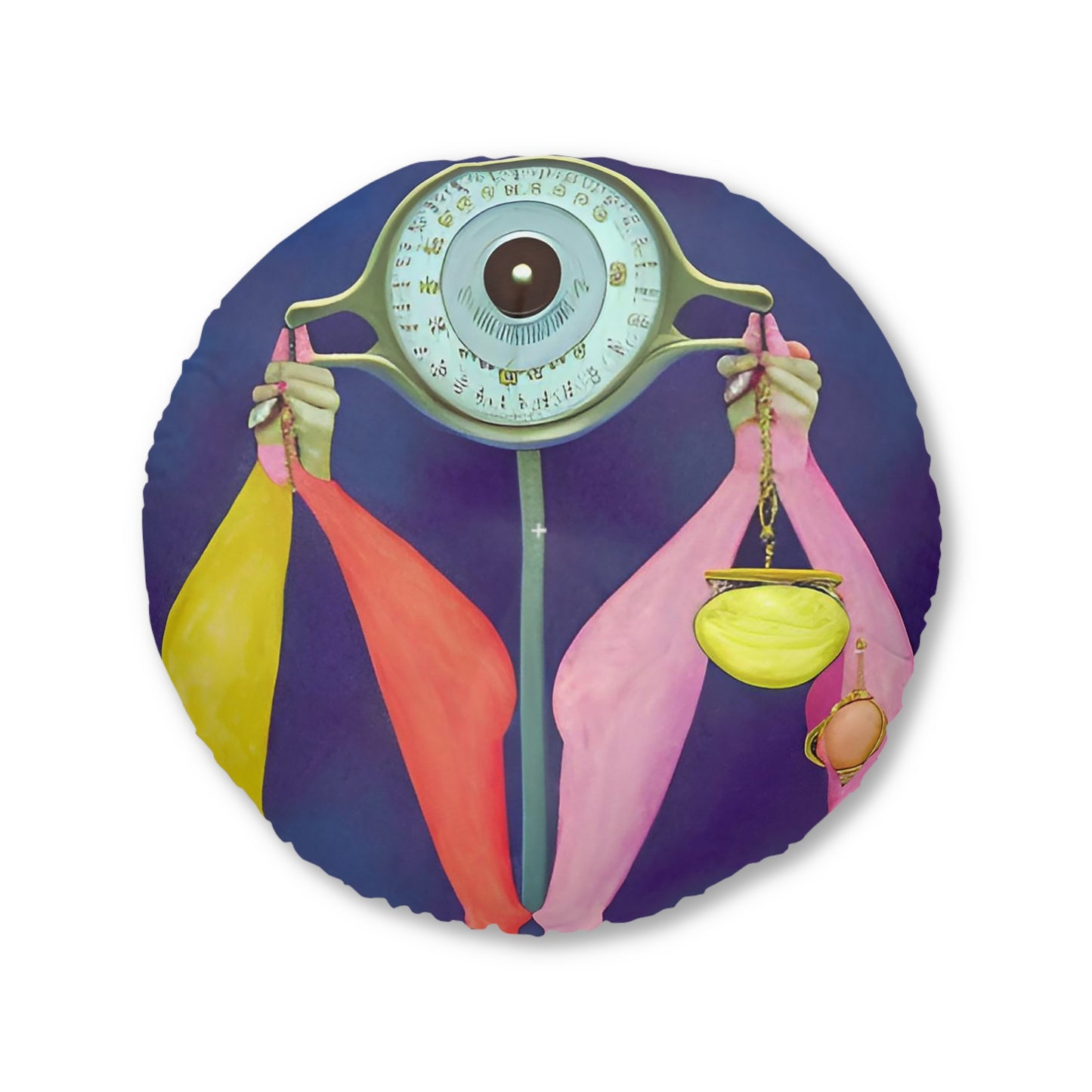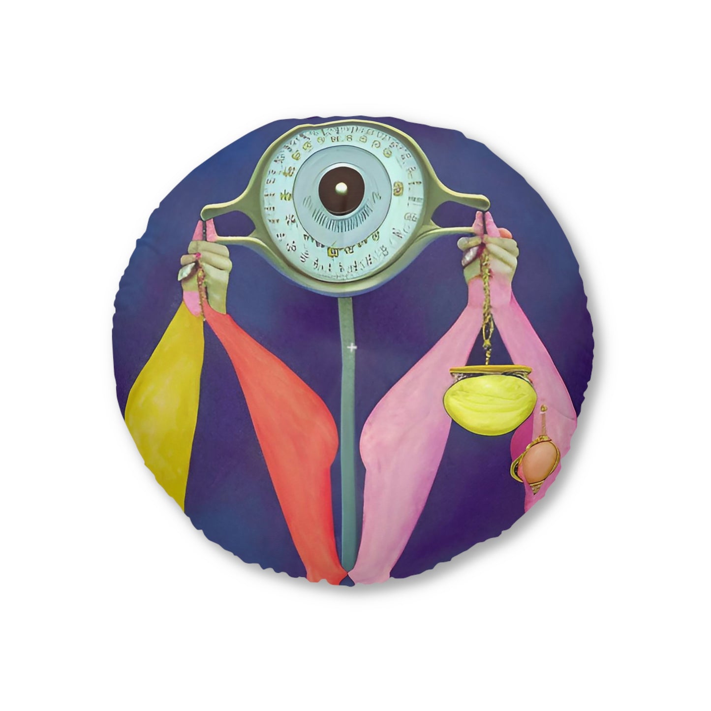 But what truly sets this floor pillow apart is its unique Libra-themed artwork. The captivating design features a harmonious balance of colors and shapes, evoking the essence of the Libra zodiac sign. It's a statement of balance, beauty, and artistry that brings a touch of personality and sophistication to your home.