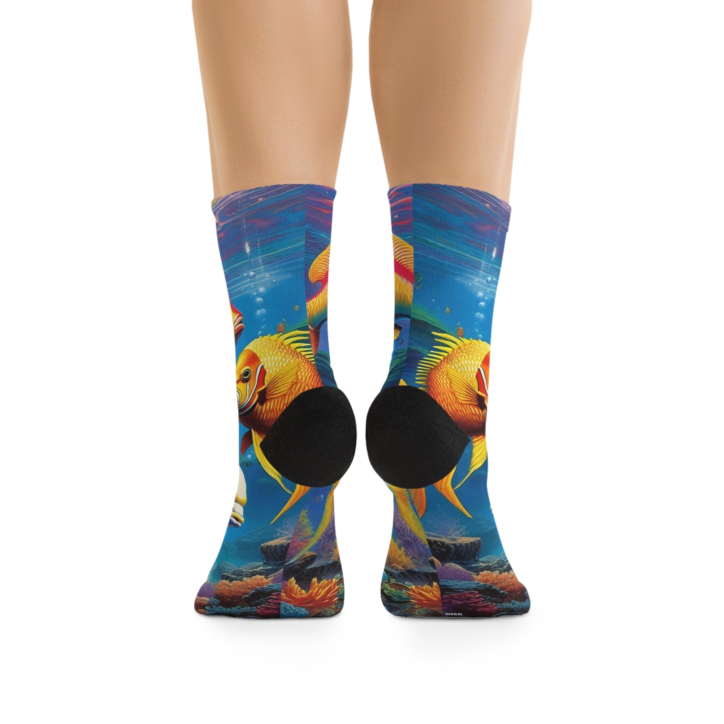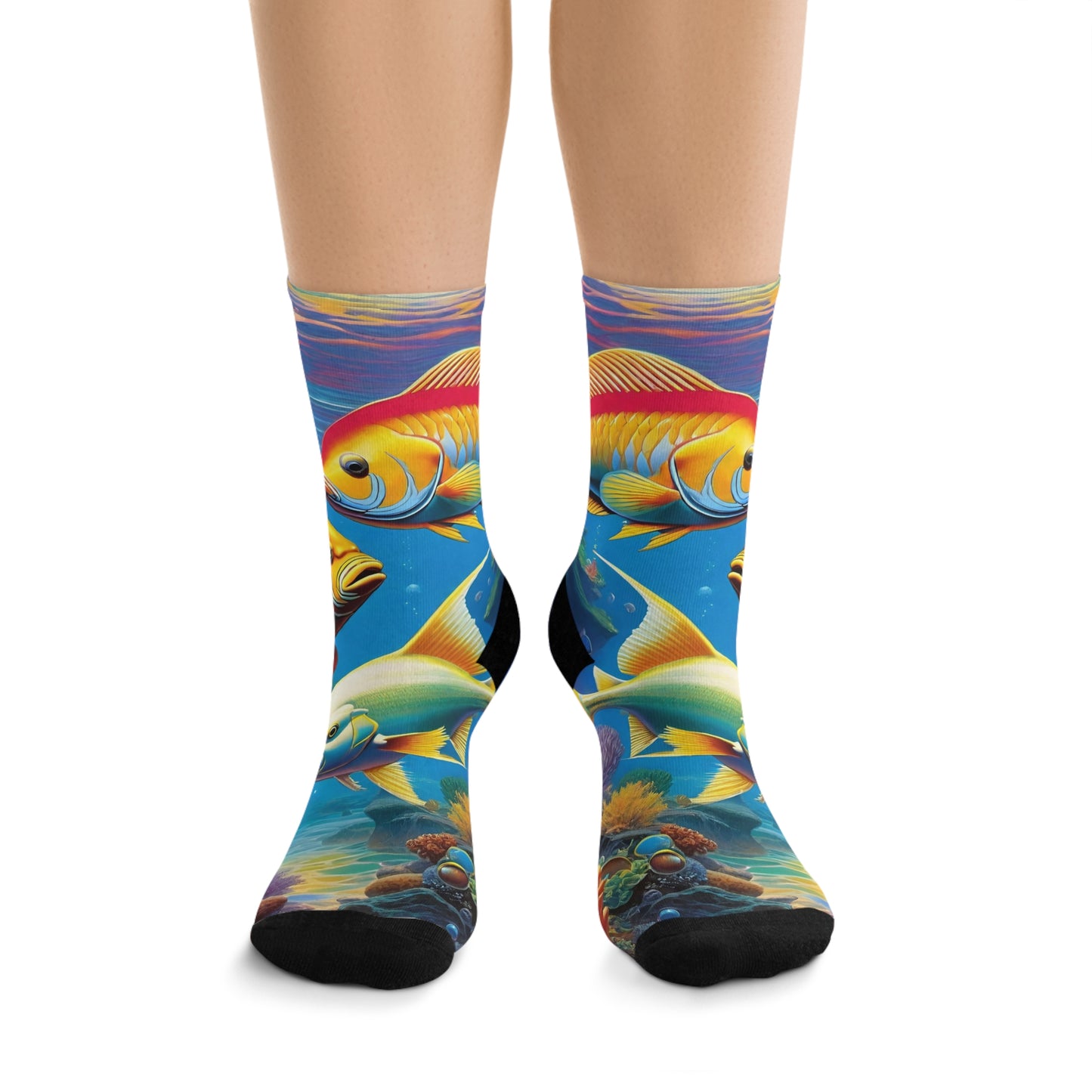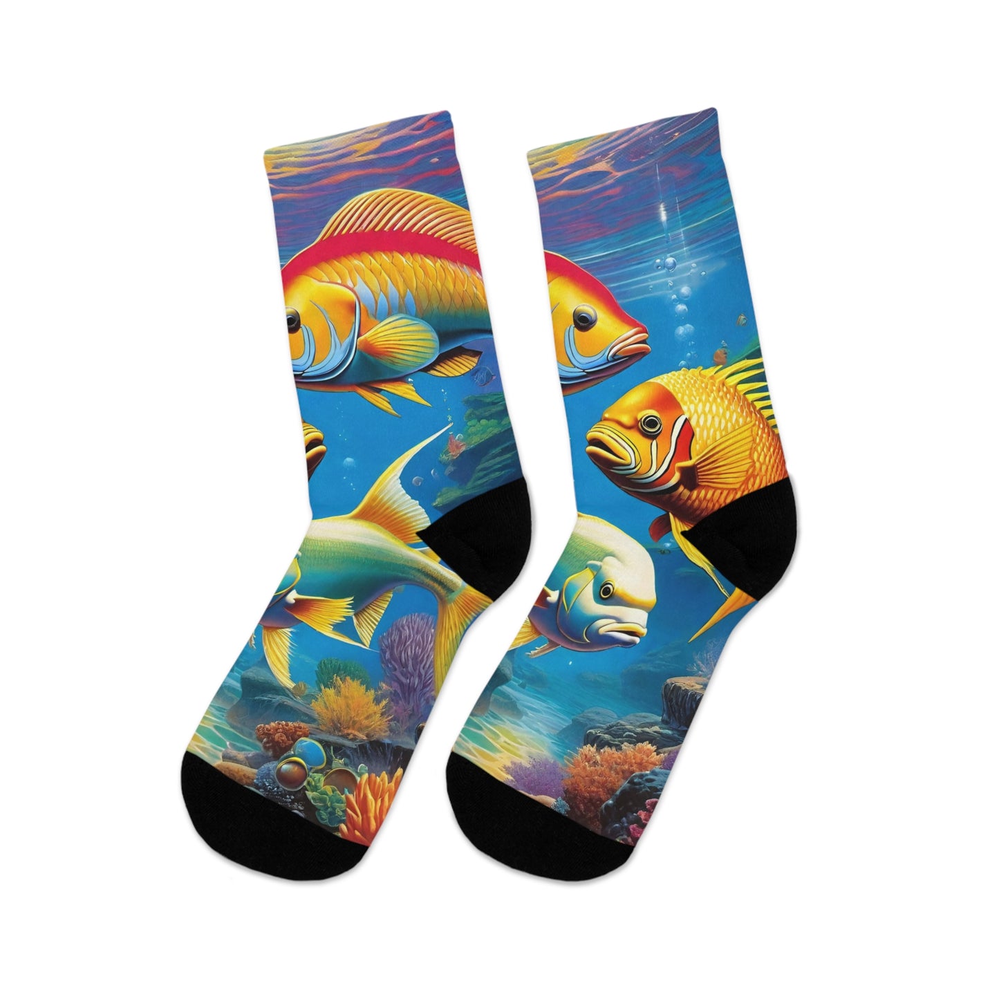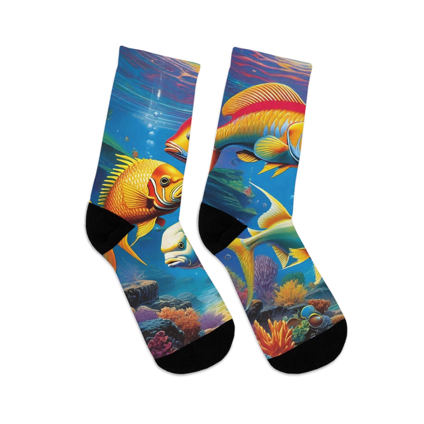 Introducing our Recycled Socks, the perfect blend of eco-friendliness and comfort. Crafted with a proprietary blend of specially sourced yarns, these socks offer an unprecedented amount of stretch without compromising on durability. Made from 58% recycled polyester, 22% nylon, 15% cotton, and 5% elastane, they're not only sustainable but also incredibly soft. With their premium 200 needle knit construction, these one-size-fits-most socks are designed to provide the ultimate comfort. Treat your feet to a unique and stylish experience with our Recycled Socks.