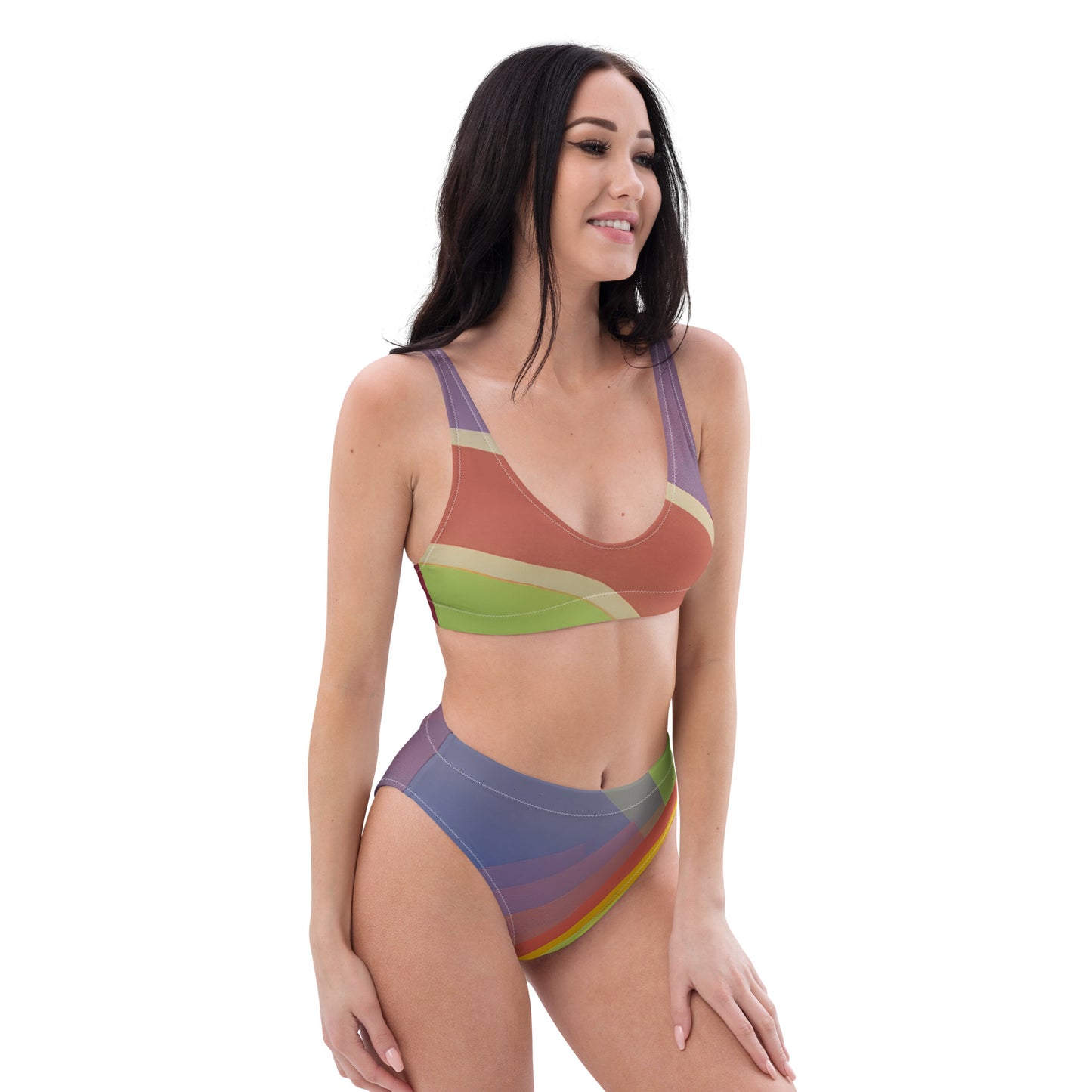 Crafted from recycled threads, this soft-to-the-touch bikini is a guilt-free fashion statement. The high-waisted bottoms and v-neck top provide a comfortable and flattering fit, ensuring you feel confident whether you're by the pool or catching waves. The top comes with removable pads, allowing you to customize your look effortlessly.