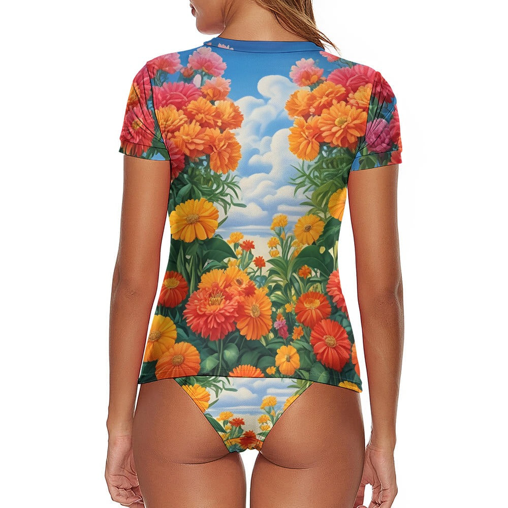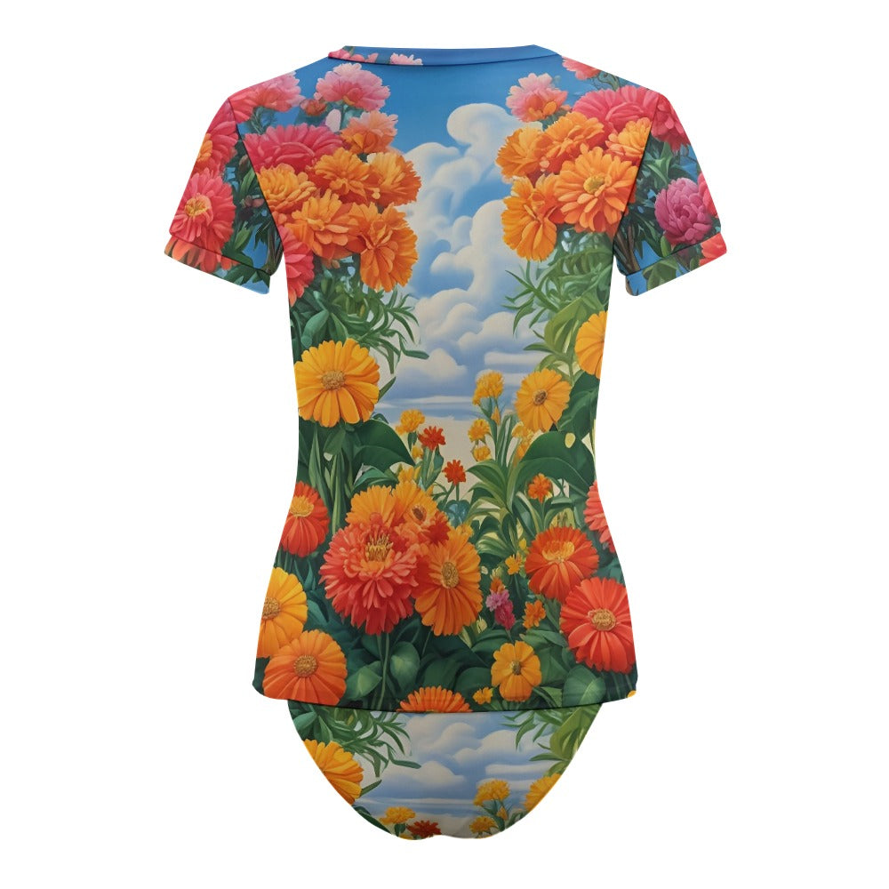 - 🌸 Unique Design: Featuring a short-sleeved, t-shirt-style top paired with classic briefs, this set is as stylish as it is functional. The soft, skin-friendly fabric ensures all-day comfort, while the quick-drying material makes it ideal for both beach days and poolside lounging.