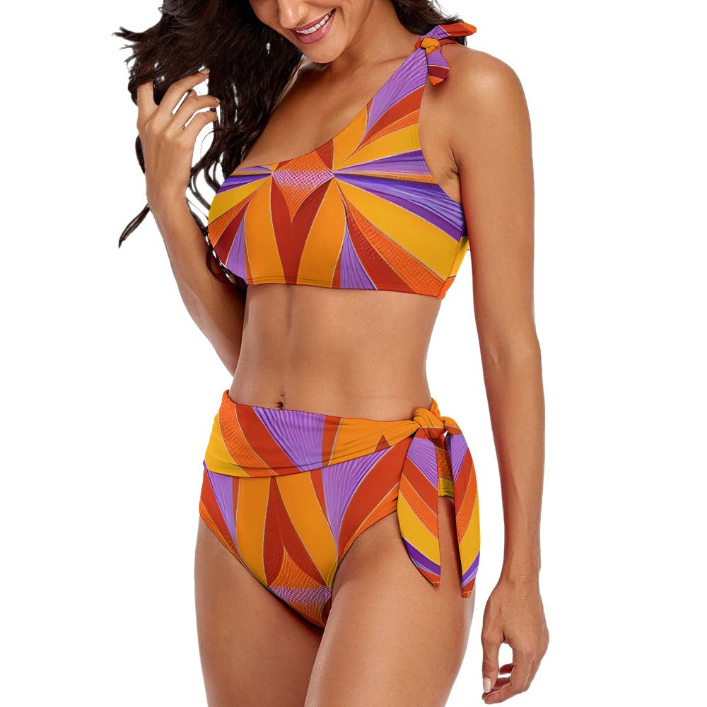This tie-up two-piece swimsuit is at once elegant and wild. Prepare for nothing but fun in or out of the water with this tropical island-inspired bikini!