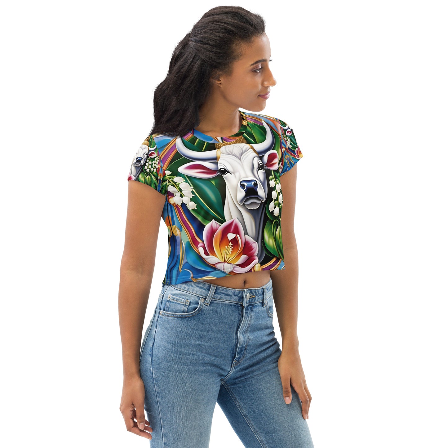 Go wild and lounge in style by pairing this Crop Tee with its celestial counterpart, the Zodiac Flowers Wide Leg Pants. Enjoy a stellar 15% discount when you acquire the matching Wide-leg pants alongside this tee.