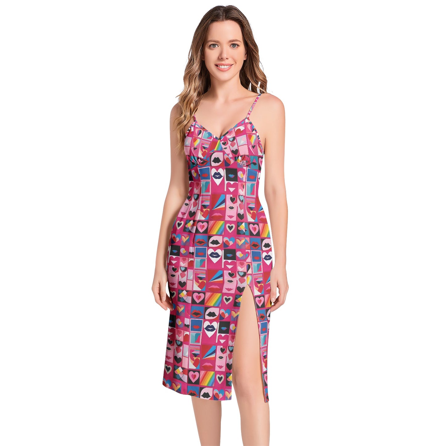 This dress is a blend of elegance and eroticism. The colorful, psychedelic print invites curiosity and sets the stage for unforgettable moments.