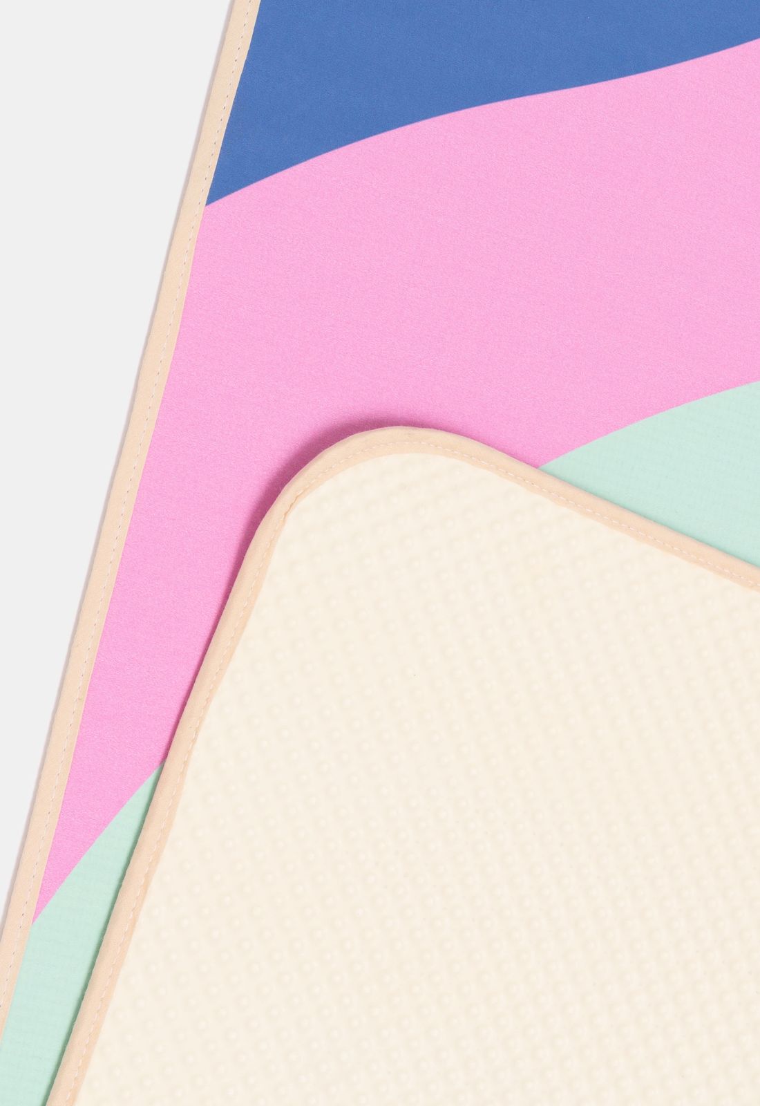 This eco-friendly yoga mat is made of sustainably-sourced linen composed of hemp or jute and features a non-slip base made from natural rubber. The beautiful print is created using non-toxic water-based inks heat fixed to the material which greatly reduces the possibility water contamination.